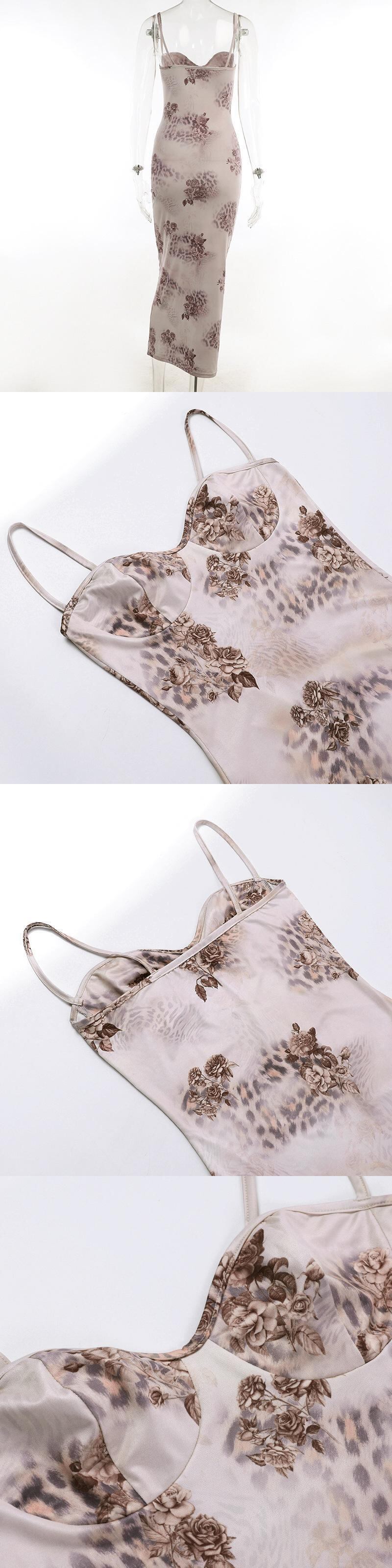 送料無料 Mozision 花柄マキシドレス女性スパゲッティストラップノースリーブレースアップスプリットサンドレスクラブパーティーロングタンクドレス AE121288865595066517