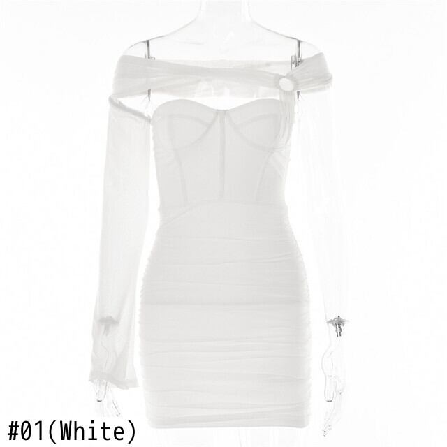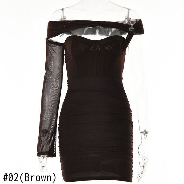 送料無料 Mozision ワンスリーブ背中の開いたセクシーなミニドレス女性ローブ二層メッシュストラップレススキニークラブパーティーショートドレス Vestido AE121288815904365001