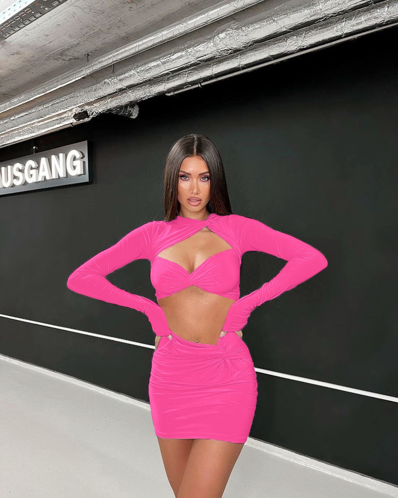 送料無料 Mozision セクシーなツーピースセット女性衣装中空アウトフルスリーブクロップトップとミニスカートマッチングスーツドレスセット AE121288862700663760 | 女性の為の通販サイト-fashion navi