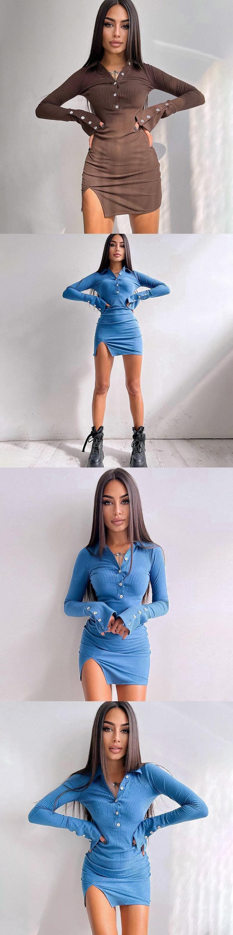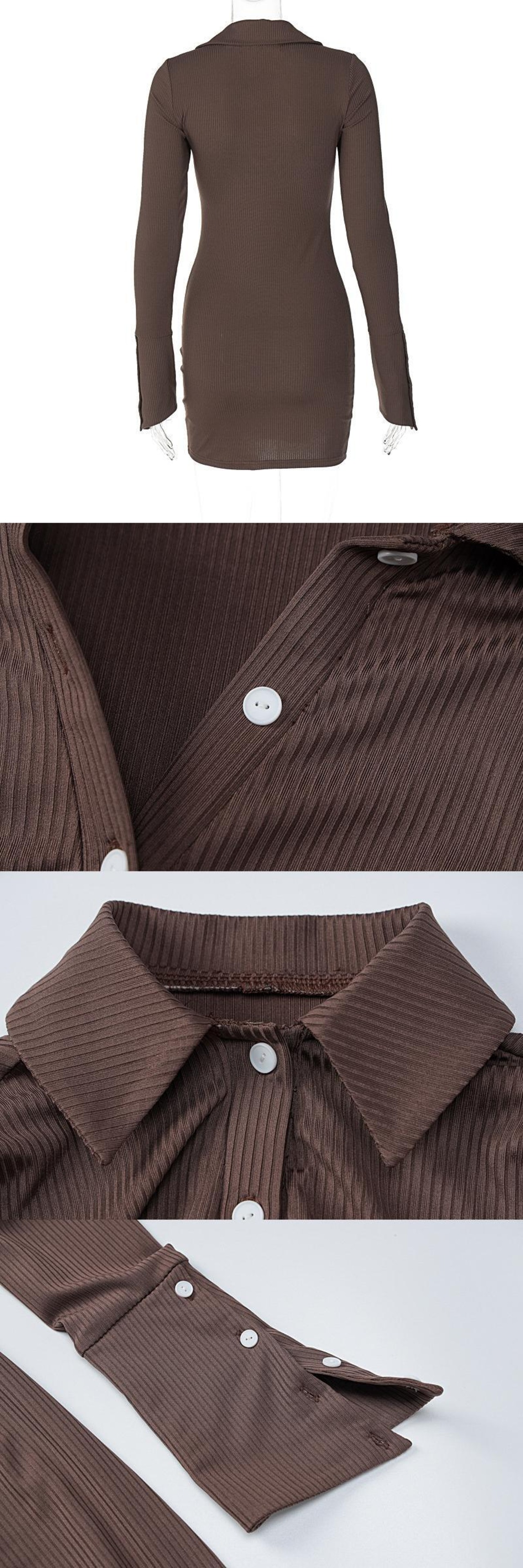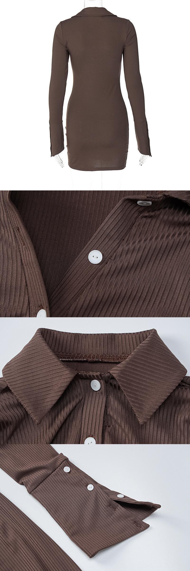 送料無料 Mozision 2022 秋ターンダウン襟フルスリーブミニドレス女性ローブシングルブレストボディコンショートドレス Vestido オータム 秋物 AE12128887718154668