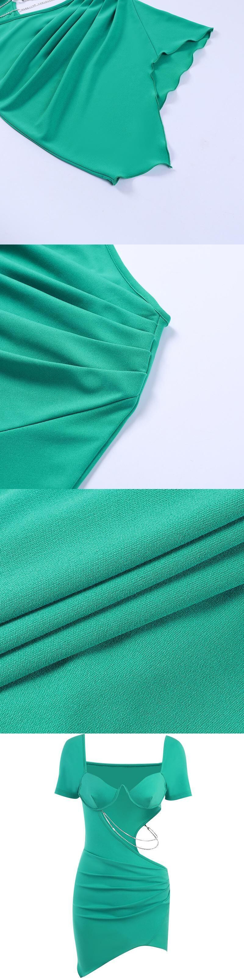 送料無料 Mozision ダイヤモンドチェーンストラップレスシャーリングミニドレス女性新中空アウト半袖背中の開いたセクシーなクラブパーティードレス vestido ショート ハーフスリーブ AE121288840063476112