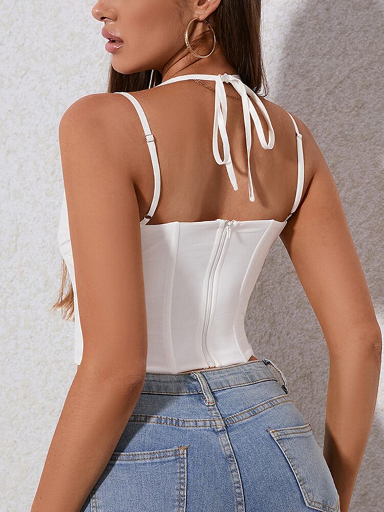 送料無料 Mozision 二層メッシュストラップキャミソールトップス女性ビスチェホワイトジッパーレースアップフィッシュボーンバックレスタンクトップスキニーパーティークロップトップ AE121288870964058031