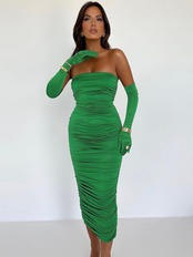 送料無料 Mozision elegant オフショルダー付きスリーブミディドレス女性ローブストラップレス背中の開いたボディコンロングドレス Vestido クラブウェア エレガント AE121288874429652963