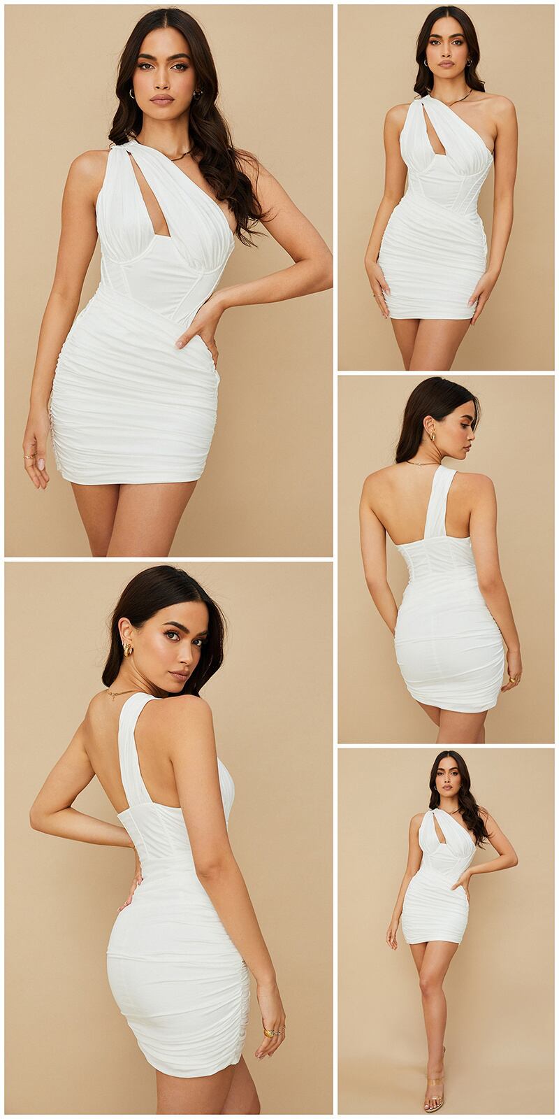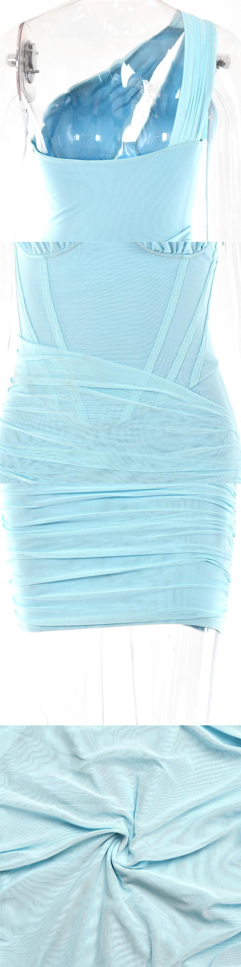 送料無料 Mozision 二層メッシュボディコンミニドレス女性の夏のワンショルダー背中の開いたセクシーなドレスセクシーなパーティーシャーリングドレス Vestidos サマー 夏物 AE121288884518552301