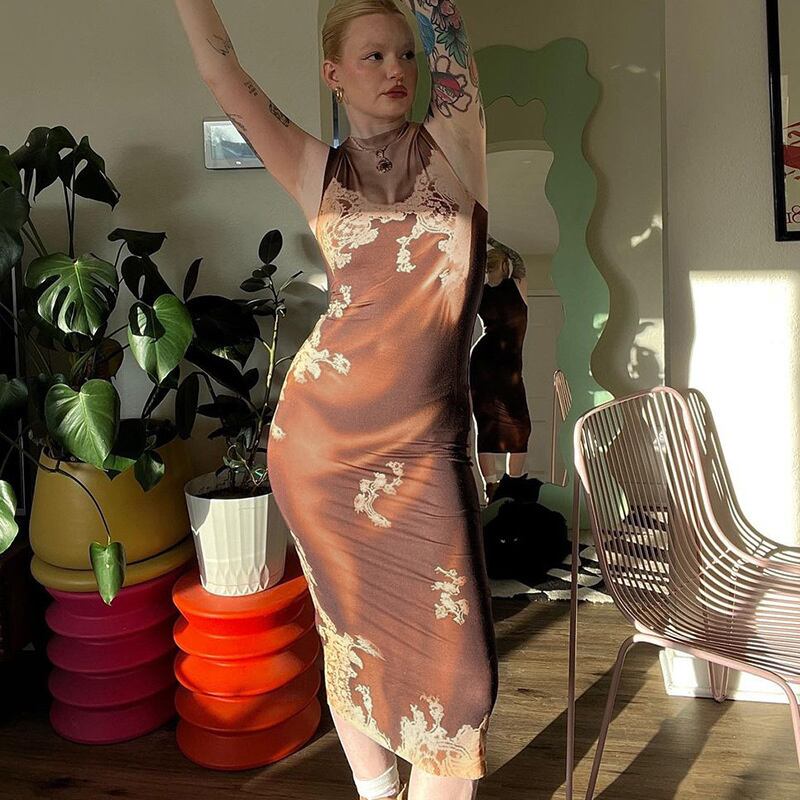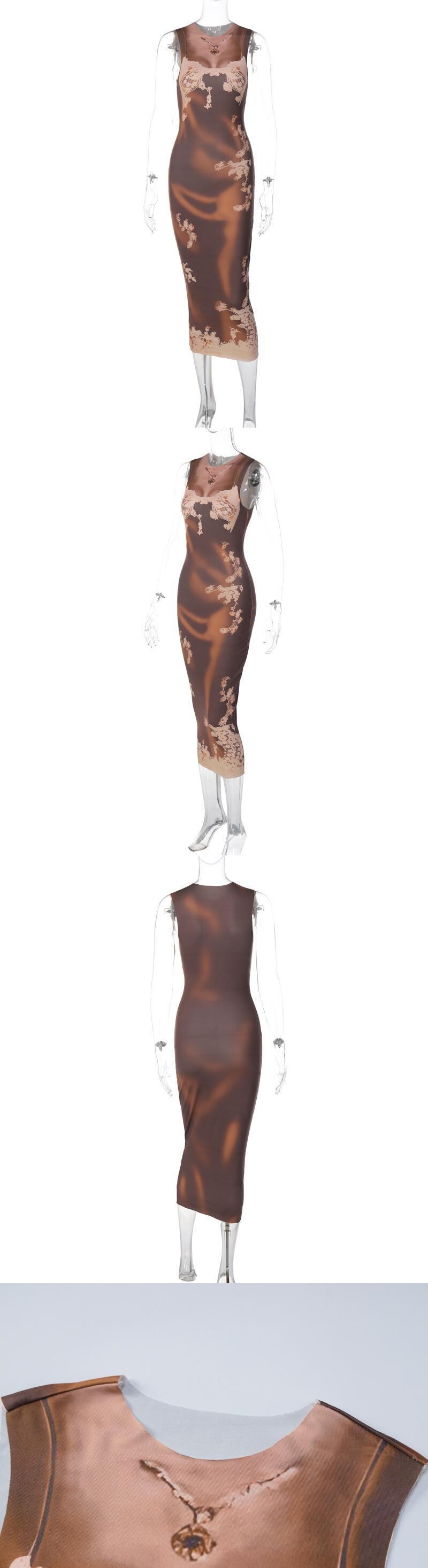 送料無料 Mozision プリントノースリーブミディドレス女性 2023 夏 O ネックタンクドレスパーティーボディコンセクシーなロングドレス Vestidos サマー 夏物 Oネック AE121288811549415065