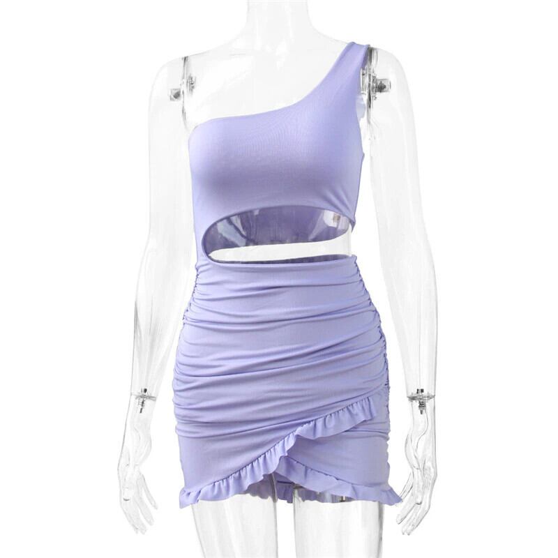 送料無料 Mozision 背中の開いたセクシーなサマードレス女性カットアウトフリルボディコンミニシャーリングドレス中空アウトドレス Vestidos 夏物 AE121288843289781088