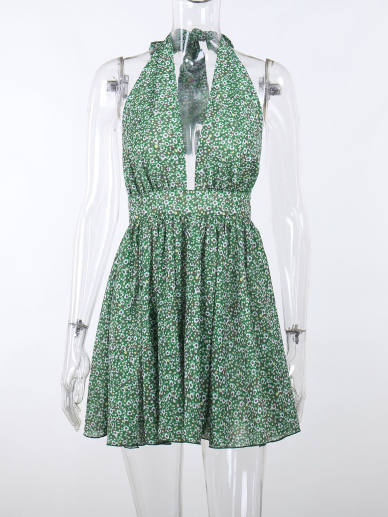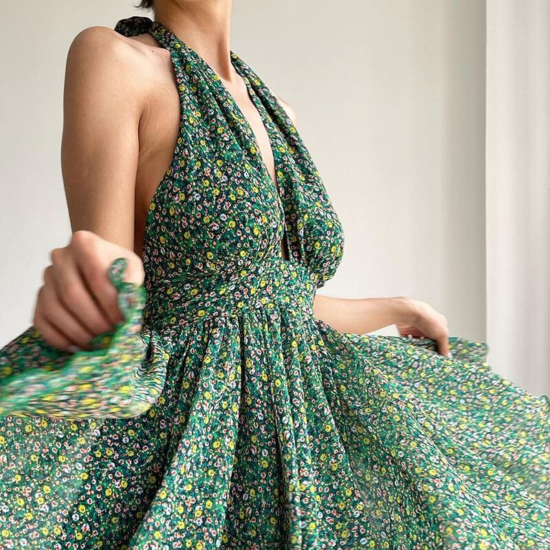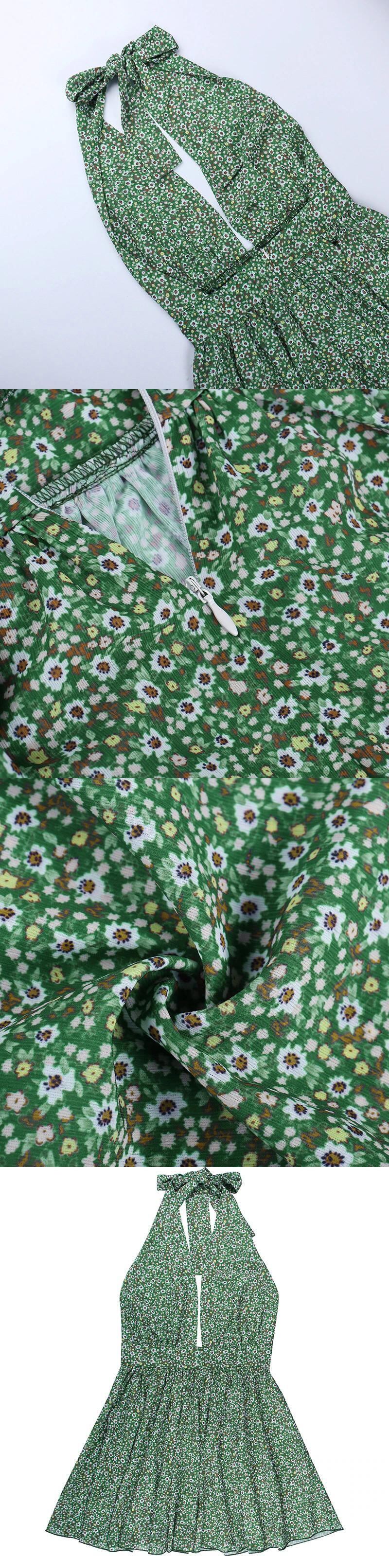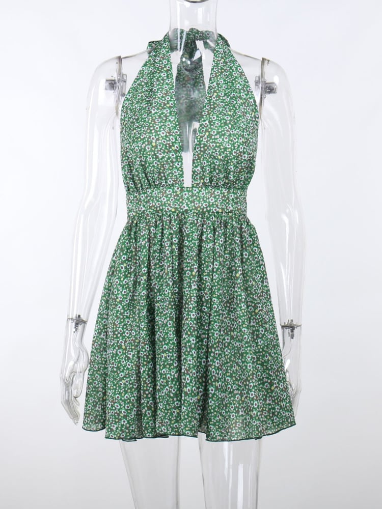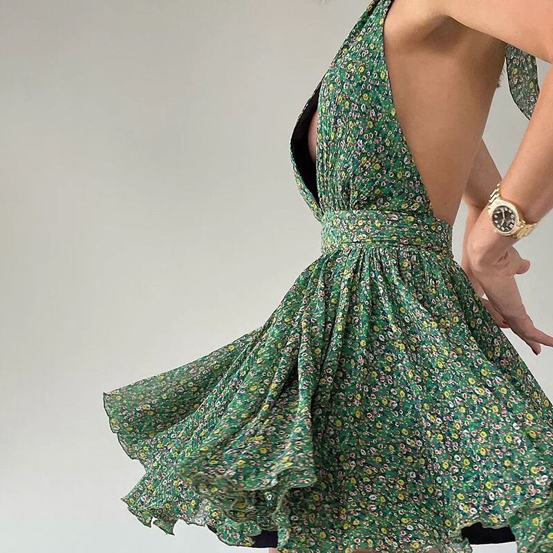 送料無料 Mozision 花柄ディープ V ネックミニドレス女性 2023 夏ホルターバックレスプリーツクラブパーティーセクシーなショートドレス Vestido サマー 夏物 Vネック AE121288851168821805