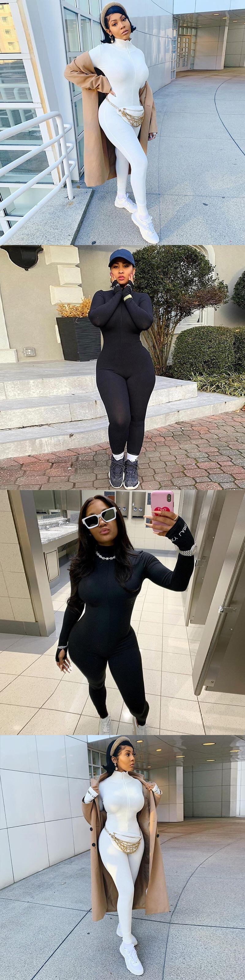 送料無料 Mozision リブタートルネックスポーツウェアジャンプスーツ女性の手紙刺繍スキニーセクシーな遊び着フィットネスロンパースオーバーオール AE121288854152356436
