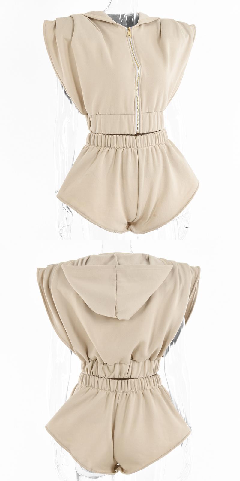 送料無料 Mozision ツーピースセット女性ソリッドジッパーノースリーブクロップトップショーツ 2022 春ヴィンテージセット スプリング 春物 ブルマー ソリッドカラー ビンテージ AE12128882744214733