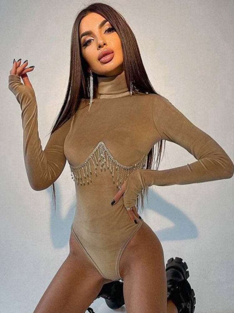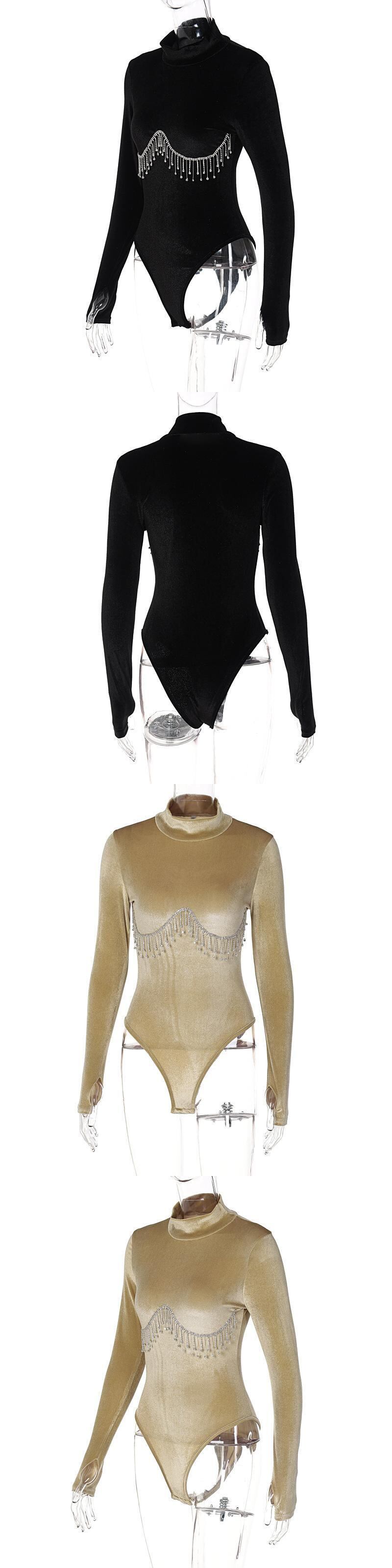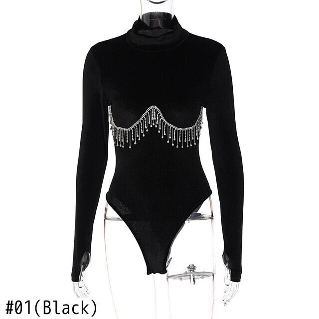 送料無料 Mozision ダイヤモンド Tel ターンテーブルボディスーツ女性冬長袖ボディトップスセクシークラブパーティーボディスーツ ロング ウィンター 冬物 AE121288859748877487