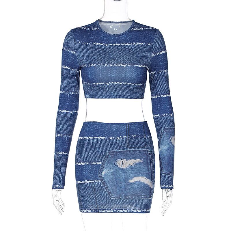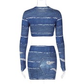 送料無料 Mozision 2022 プリントツーピースセット女性服秋 O ネックフルスリーブクロップトップとミニスカートマッチングセット オータム 秋物 Oネック AE12128883434282388
