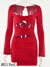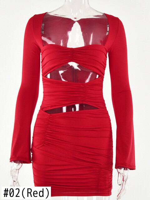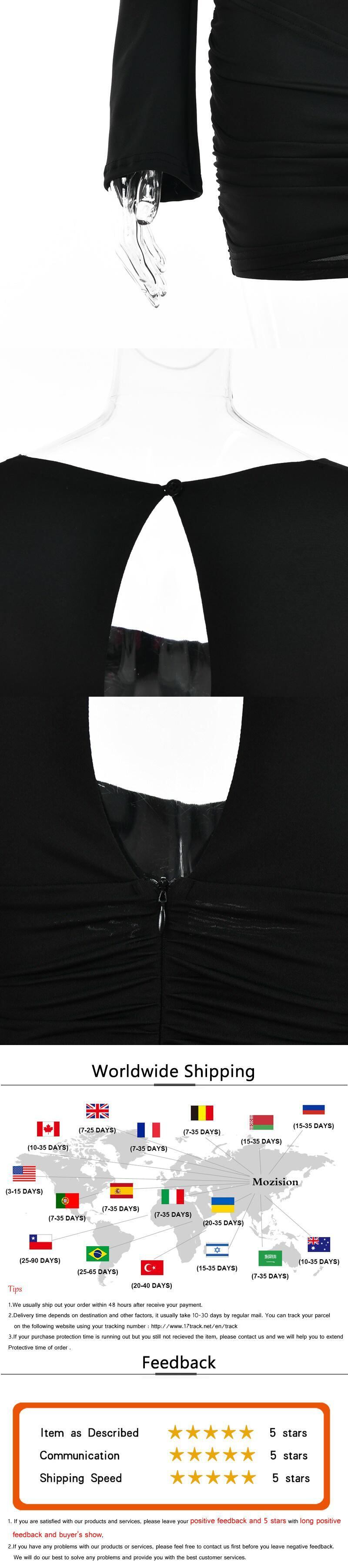 送料無料 Mozision スクエアカラーシャーリングドレス女性のセクシーな長袖ボディコン中空アウトローカット黒シースドレス vestido ロング ブラック スクウェア AE121288893423304385