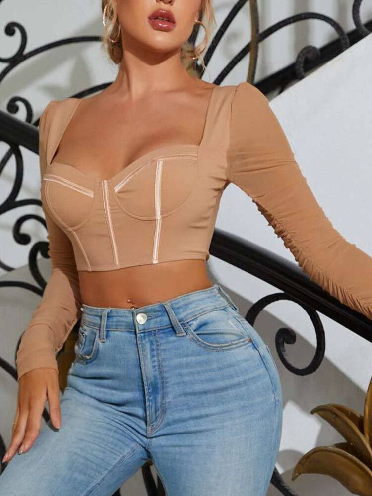 送料無料 Mozision メッシュ長袖スクエアカラー Tシャツ女性クロップドトップス夏ジッパークロップトップクラブパーティートップス ロング サマー 夏物 スクウェア AE121288871639054613 | 女性の為の通販サイト-fashion navi