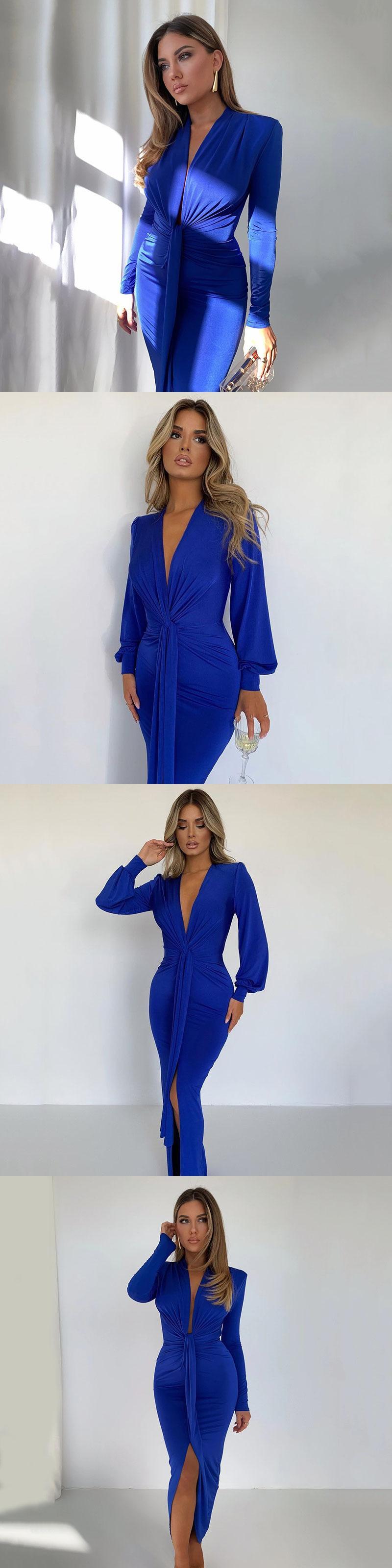 送料無料 Mozision ディープ V ネックフルスリーブロングドレス女性ローブ秋不規則シャーリングボディコンミディドレス オータム 秋物 Vネック AE121288877066596659