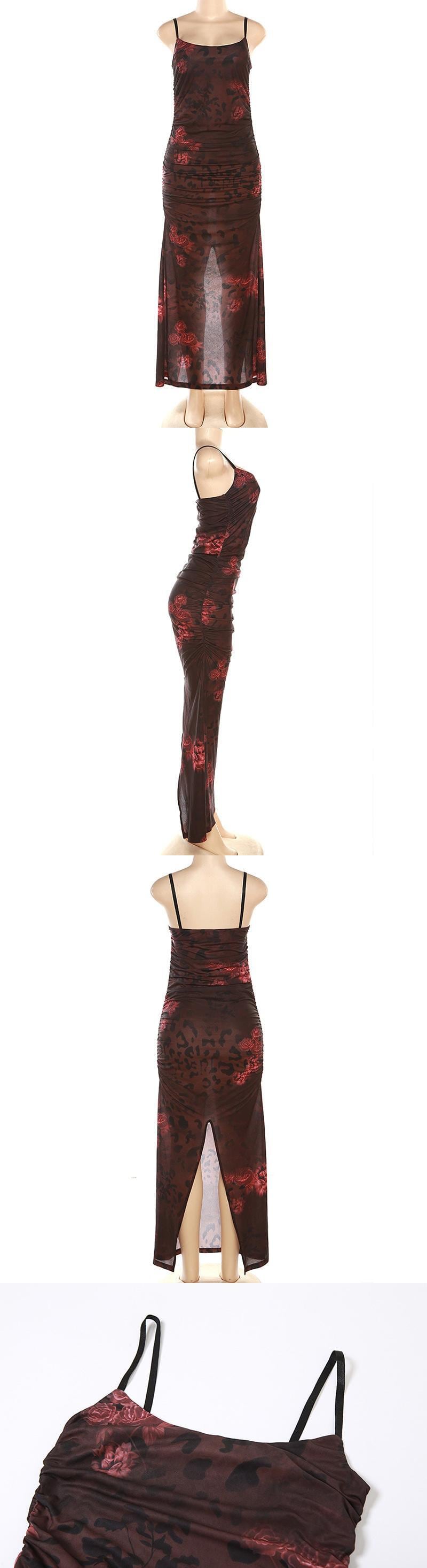 送料無料 Mozision スパゲッティストラッププリントマキシドレス女性 2023 夏ノースリーブバックレスボディコンロングドレス Vestido サマー 夏物 AE121288851704309234