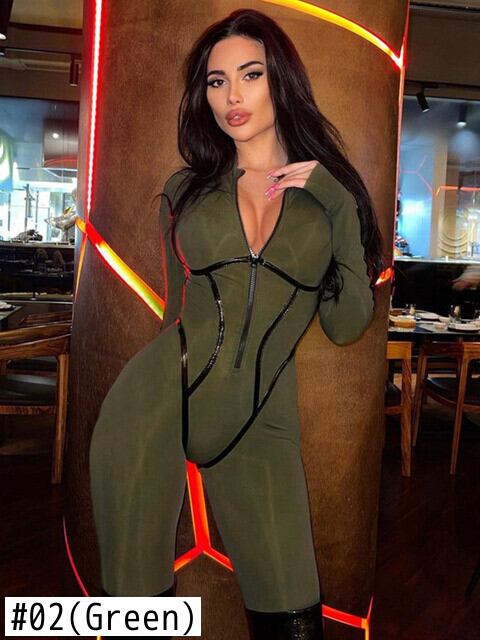 送料無料 Mozision 黒のセクシーなスキニージャンプスーツ女性オーバーオール O ネックフルスリーブジッパースポーティージャンプスーツロンパースストリート ブラック Oネック AE121288827311678464 | 女性の為の通販サイト-fashion navi