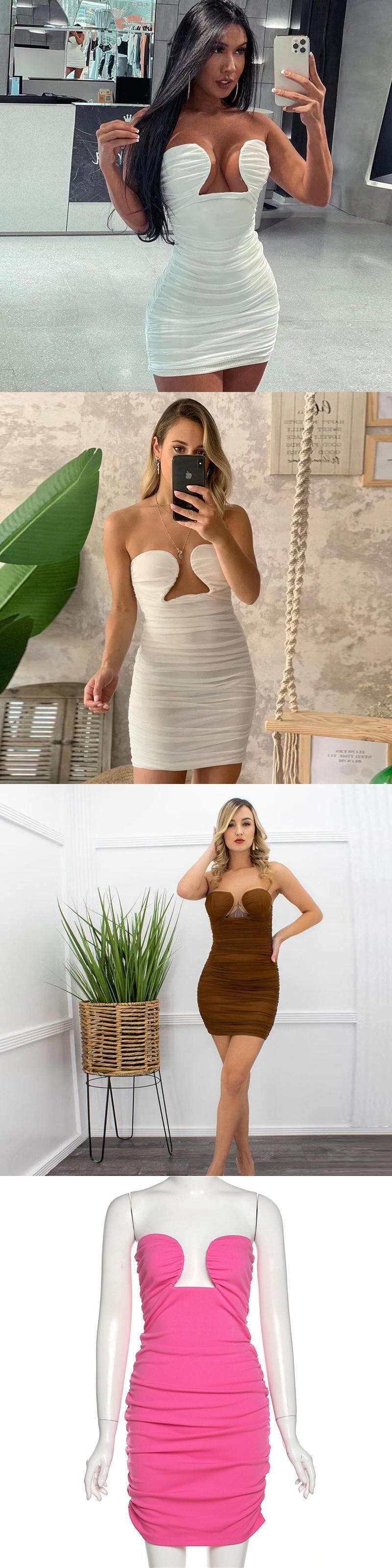 送料無料 Mozision セクシーなストラップレスボディコンドレスの女性 Partywear バックレスノースリーブシャーリングミニドレス Vestidos AE121288887652924603