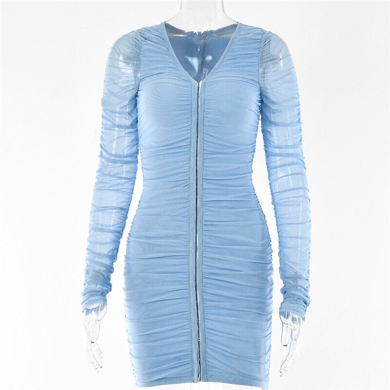 送料無料 Mozision メッシュ二重層ボディコンミニドレス女性秋 V ネックジッパー長袖スキニードレープドレス Vestidos ストリート ロング オータム 秋物 Vネック AE121288880561686651