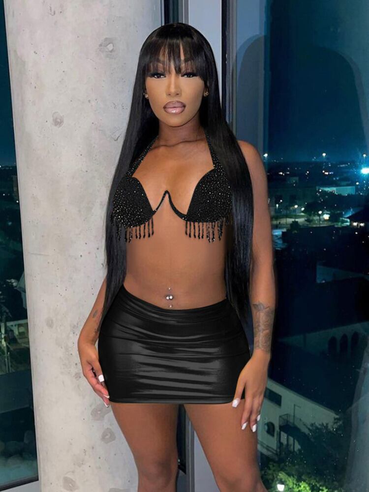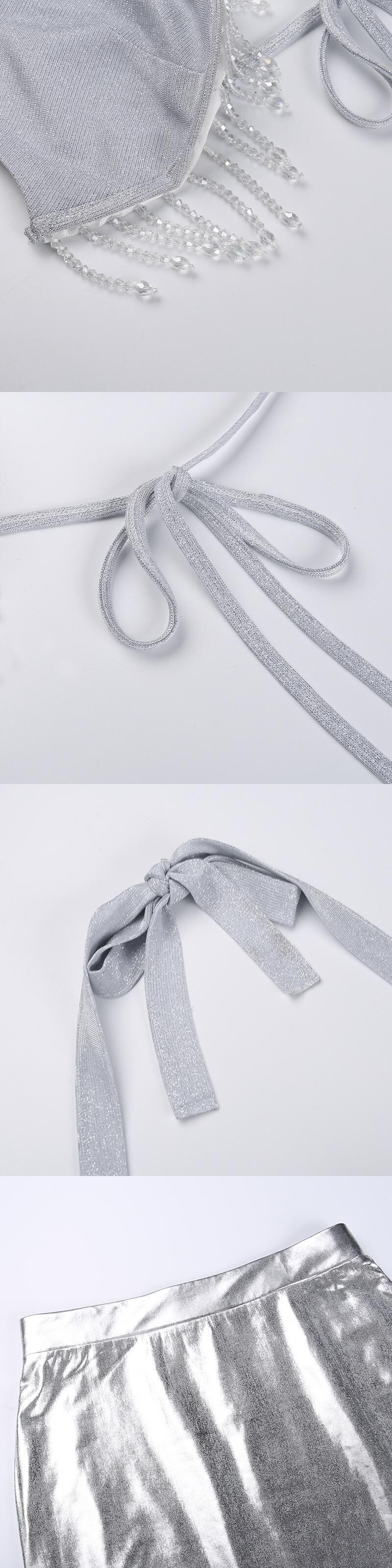 送料無料 Mozision Tel スパークルドレスセット女性ストラップレスクロップトップとミニスカートマッチングセットグリッターシャイニーパーティーセクシーなツーピースセット AE121288819596887206