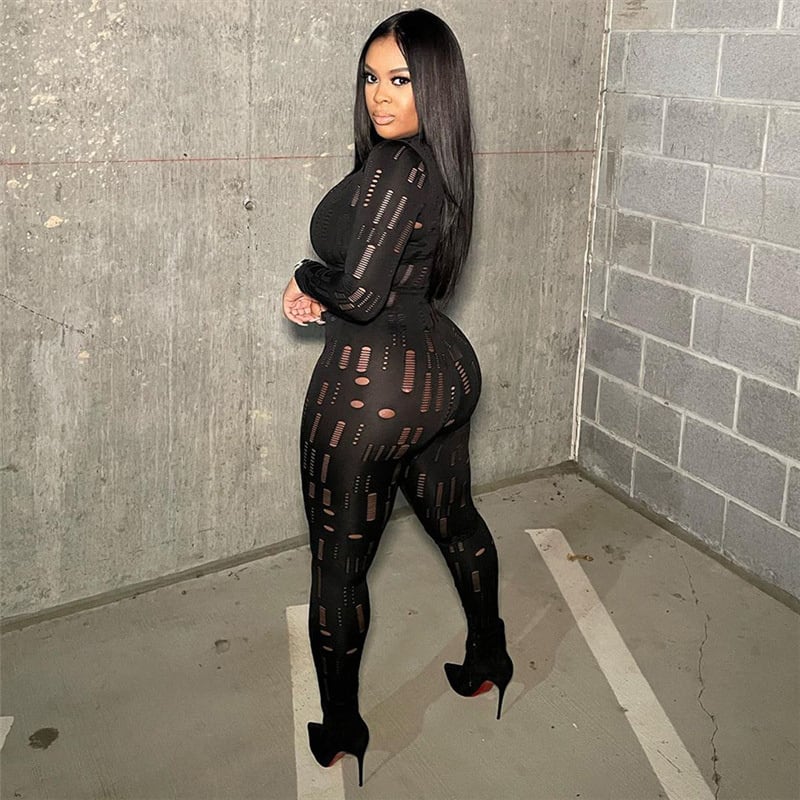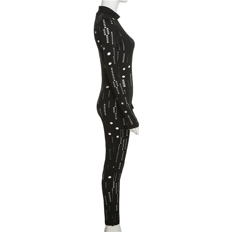 送料無料 Mozision 黒中空スキニージャンプスーツ女性 2023 夏 O ネック長袖スポーティフィットネスジャンプスーツウエストセクシーなジャンプスーツ ロング ブラック サマー 夏物 Oネック AE12128884984462076