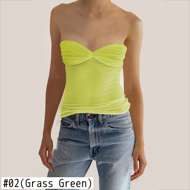 送料無料 Mozision シースルーメッシュストラップレスクロップトップ女性ビスチェオフショルダーノースリーブタンクトップセクシーなニットクロップドトップ AE121288810197590632