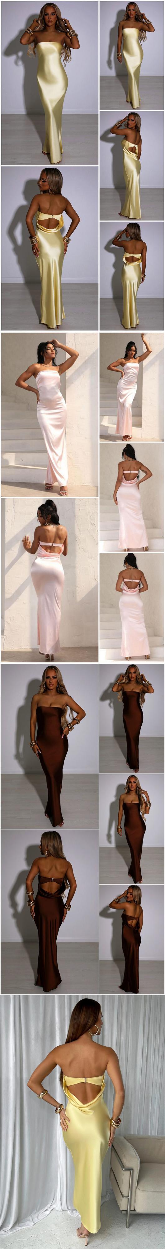 送料無料 Mozision サテンバックレスマキシドレス女性ガウンストラップレスノースリーブボディコンナイトクラブパーティーロングドレス Vestido AE121288831094058726