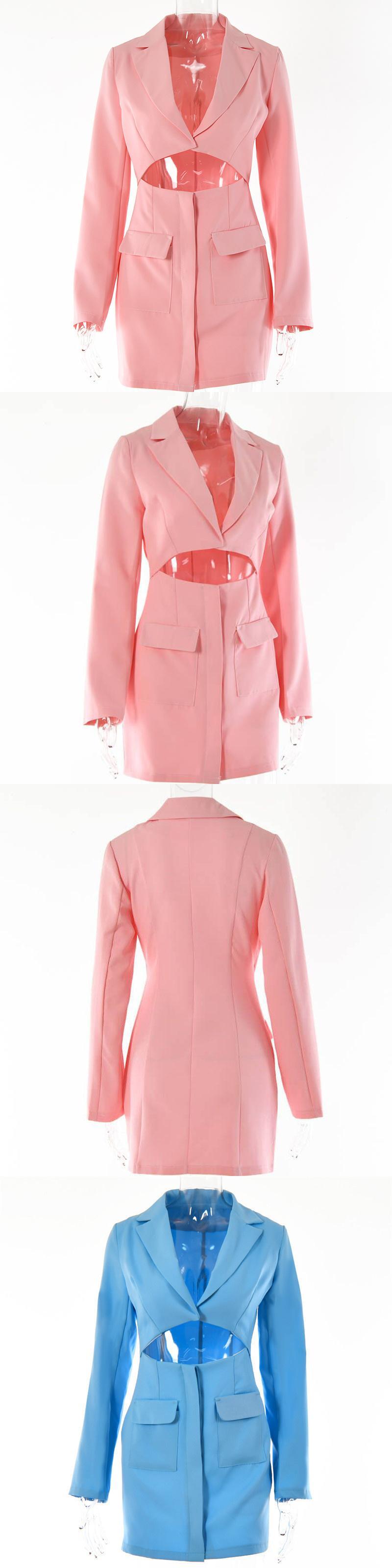送料無料 Mozision 秋長袖ブレザードレス女性カーキノッチ襟中空アウトボタンドレスボディコンパーティーミニドレス ロング オータム 秋物 AE121288818924344564