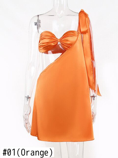 送料無料 Mozision ワンショルダーストラップレスのセクシーなミニドレス女性ローブサテン中空アウト背中の開いたナイトクラブパーティーショートドレス Vestido AE121288838870883942 | 女性の為の通販サイト-fashion navi