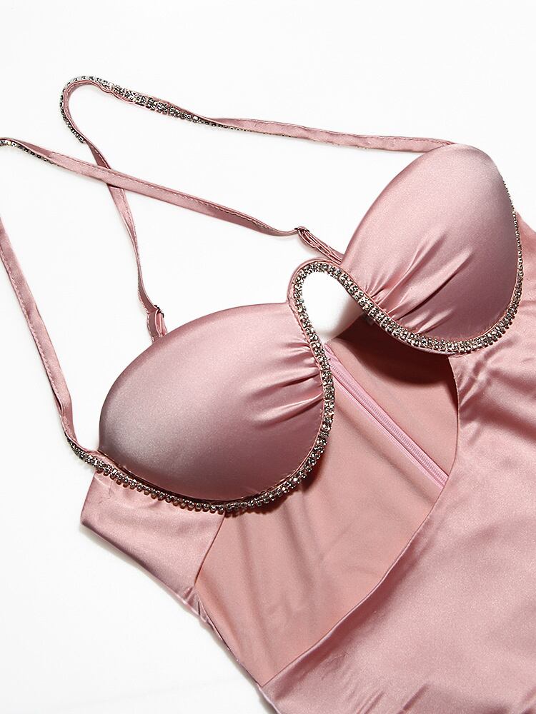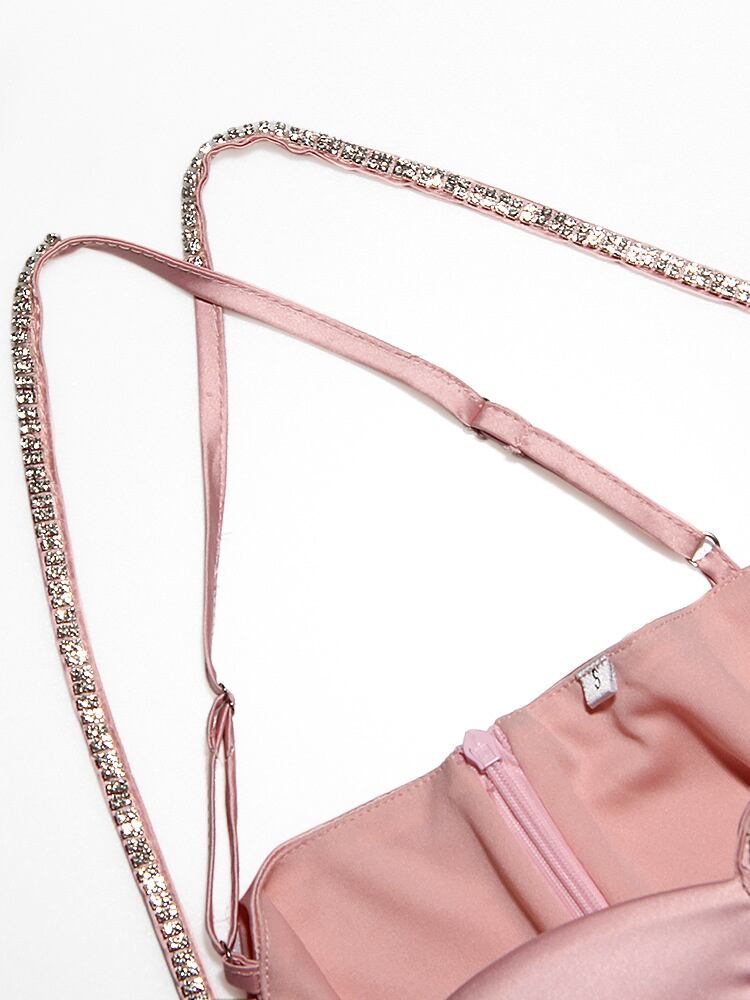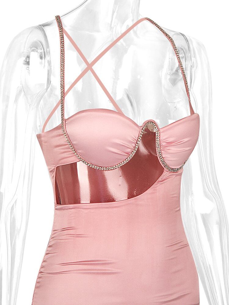 送料無料 Mozision ダイヤモンドチェーンスパゲッティストラップ女性のドレス中空アウトノースリーブボディコンミディドレス女性のセクシーなパーティークラブドレス AE121288881774706265