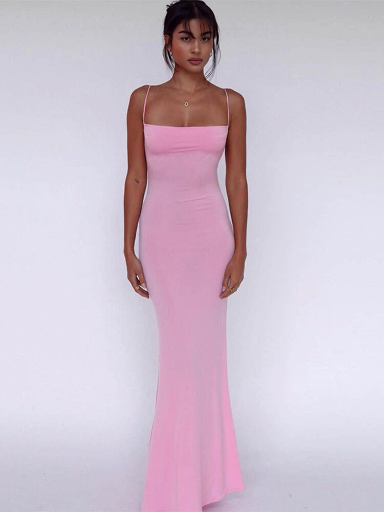 送料無料 Mozision スパゲッティストラップバックレスマキシドレス女性サンドレス夏ノースリーブボディコンビーチパーティーロングドレス Vestido サマー 夏物 AE12128882946476213
