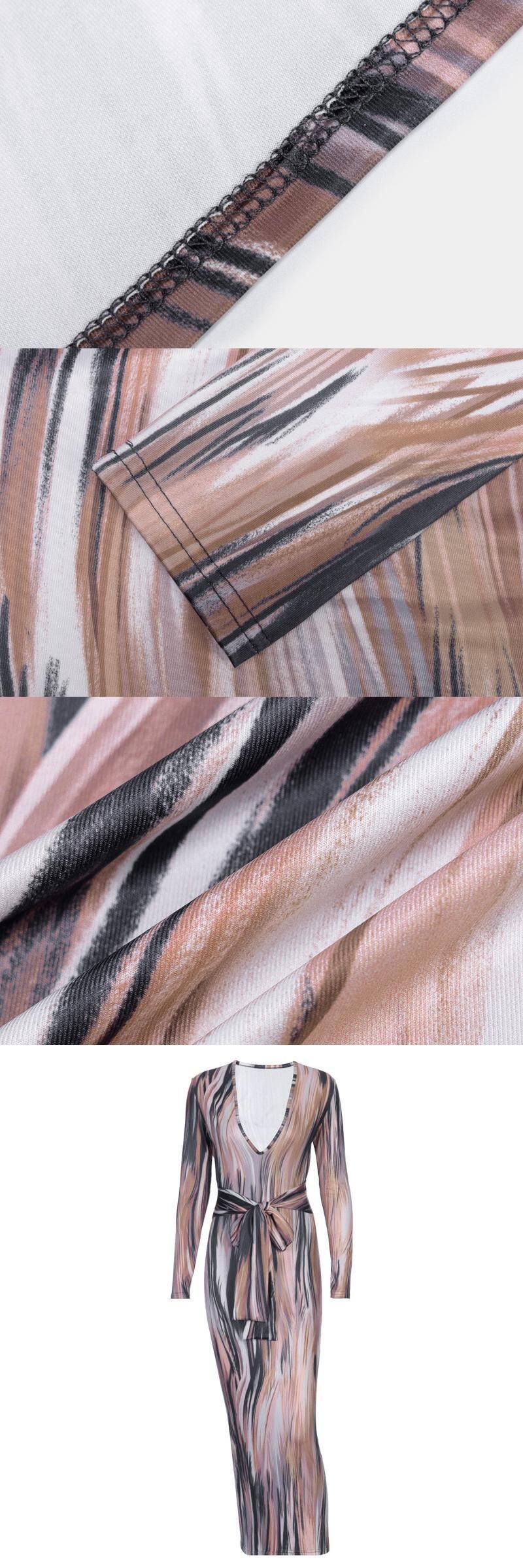 送料無料 Mozision ストライププリントマキシドレス女性ローブ 2023 春ディープ V ネックフルスリーブボディコンロングドレス Vestido 服 スプリング 春物 Vネック AE121288811676267206