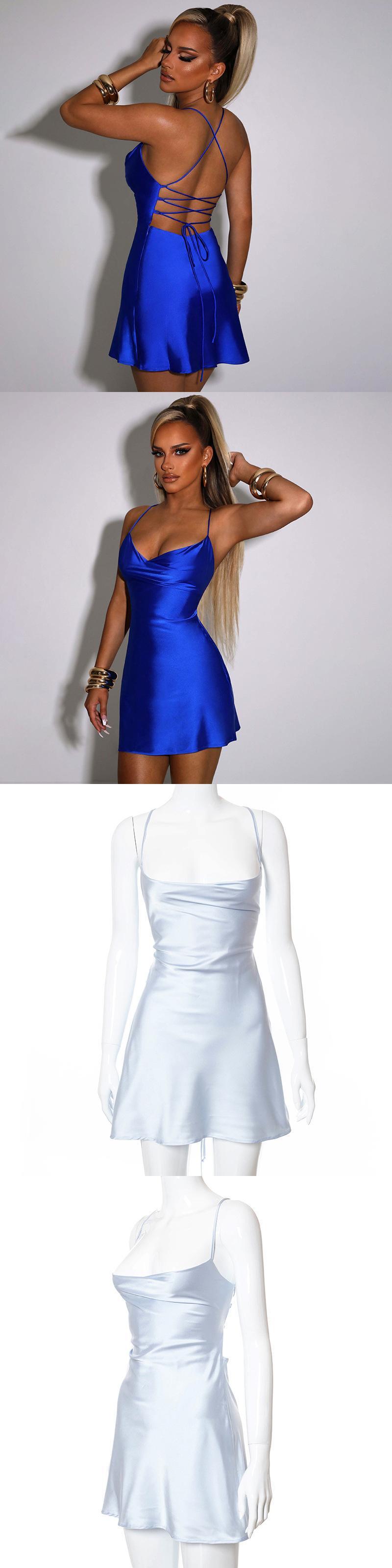 送料無料 Mozision サテンスパゲッティストラップミニドレス女性 2022 夏ノースリーブバックレスレースアップボディコンクラブパーティードレス サマー 夏物 AE121288898497969303