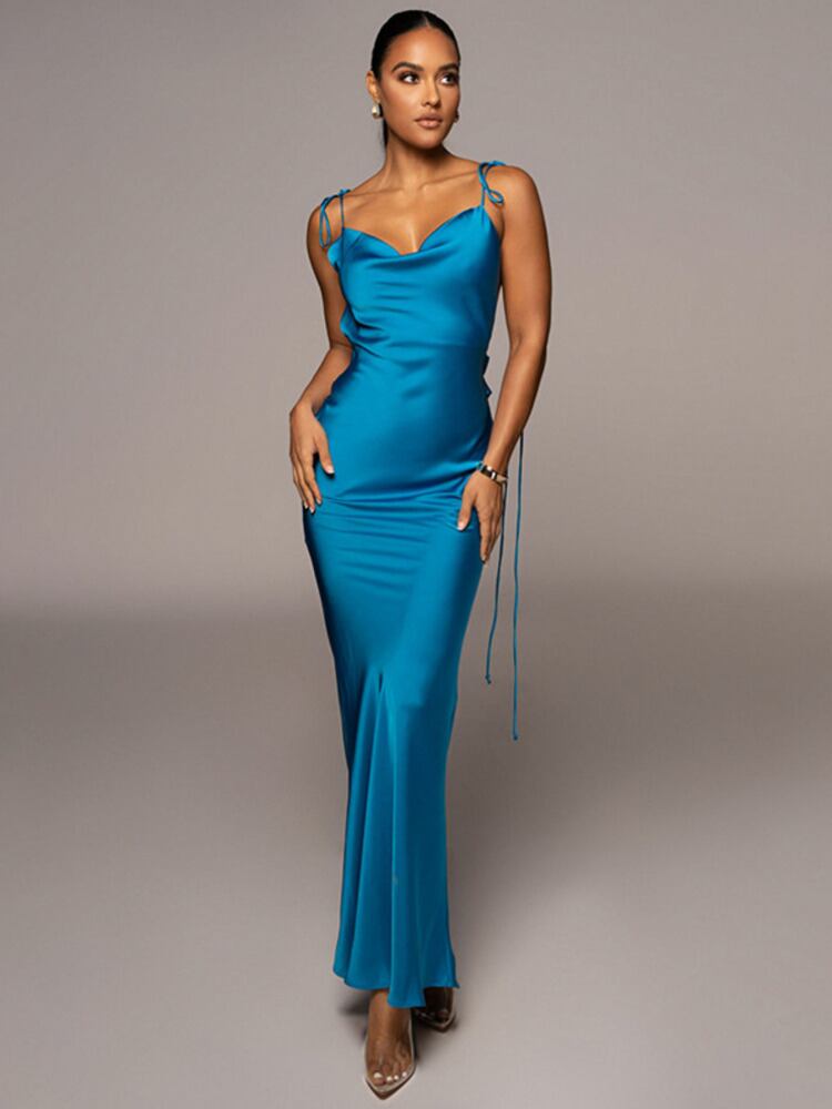 送料無料 Mozision 背中の開いたノースリーブマキシドレス女性ローブスパゲッティストラップレースアップボディコンセクシーなパーティーロングドレス Vestido AE121288861728796338