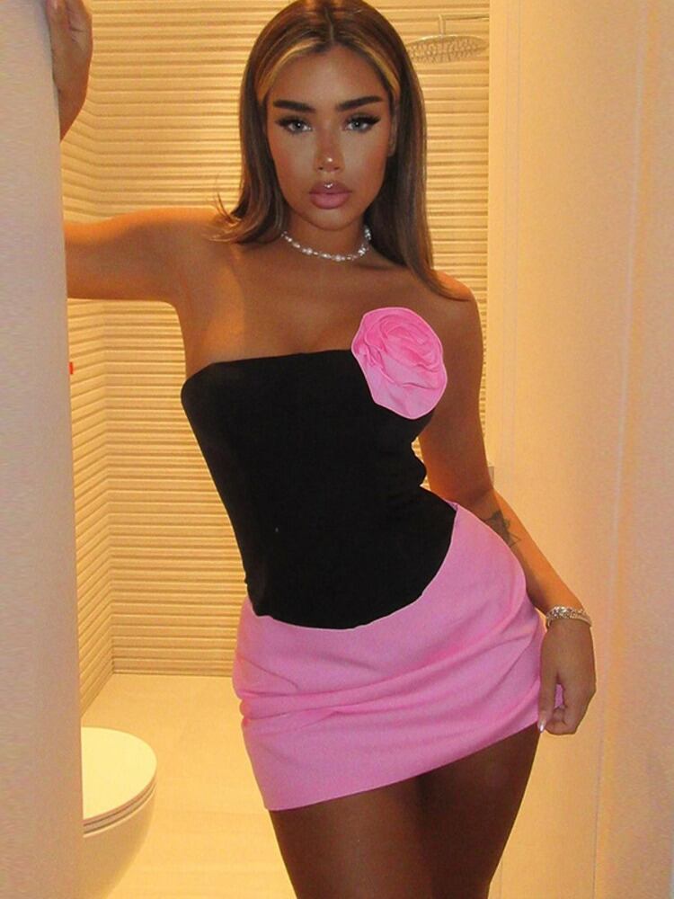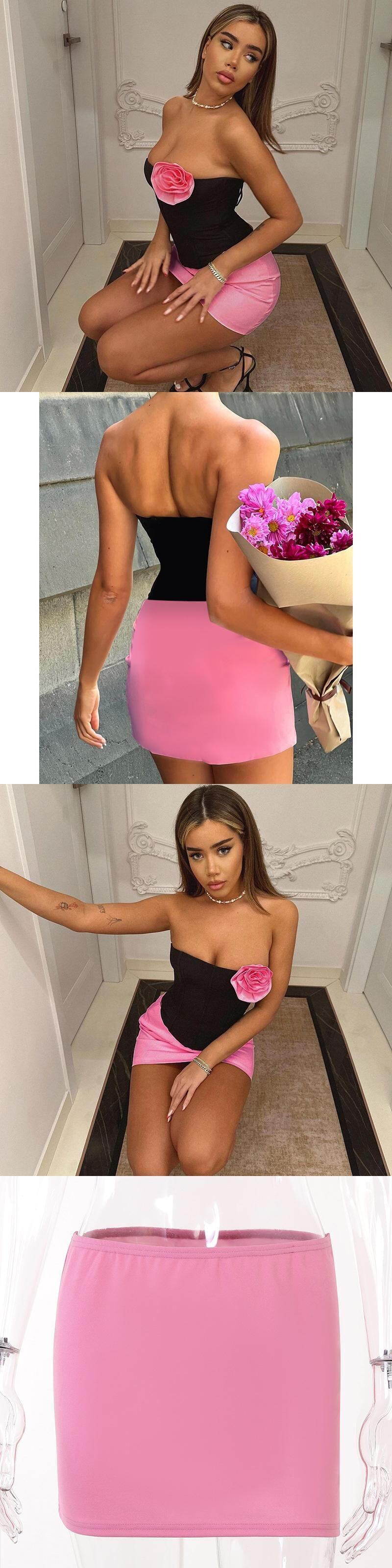 送料無料 Mozision パッチワークフラワードレスセット女性ストラップレスクロップトップとミニスカートマッチングセットセクシーなボディコンツーピーススーツ フラワーデザイン AE121288838378411456 | 女性の為の通販サイト-fashion navi