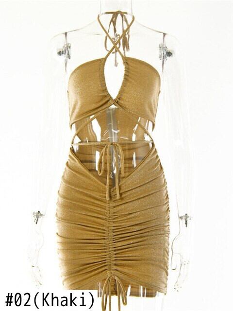 送料無料 Mozision ホルター バックレス ミニシャーリング ドレス女性の夏のレースアップ ノースリーブ ボディコン ドレス中空アウト ビーチ パーティー ドレス女性 サマー 夏物 AE12128884298810360