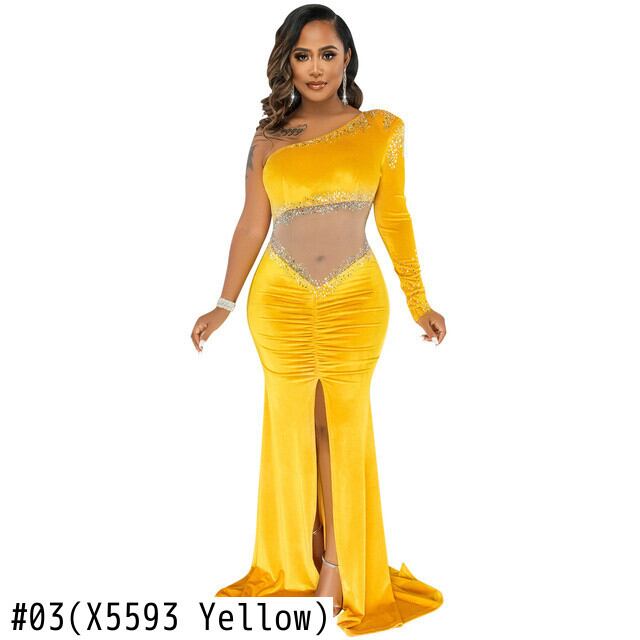 送料無料 Mozision ベルベット ダイヤモンド メッシュ シースルー マキシ ドレス女性ガウン ワン スリーブ スプリット ロング ドレス Vestido AE121288833045201567 | 女性の為の通販サイト-fashion navi