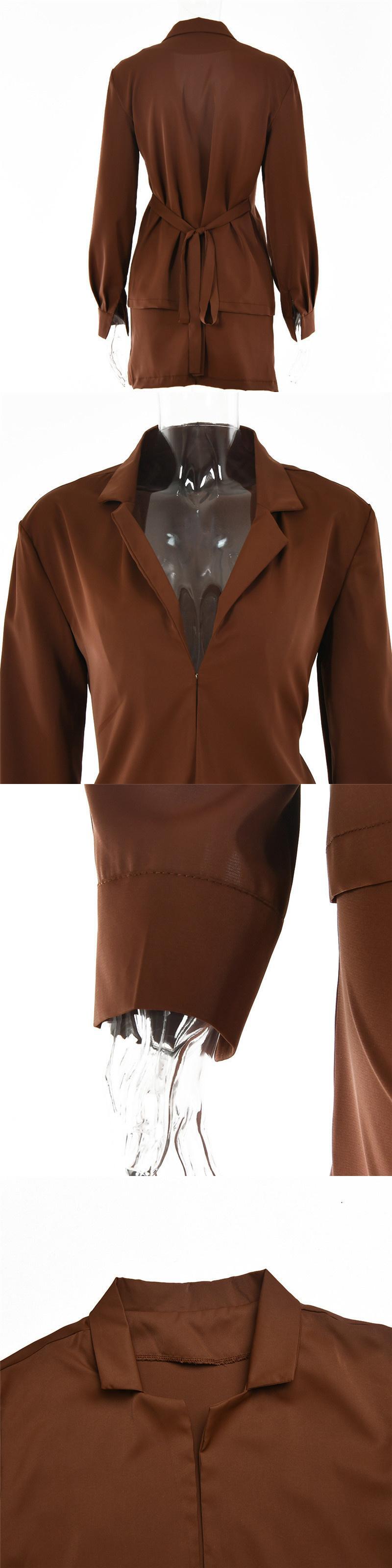 送料無料 Mozision ターンダウン襟ボタン女性ツーピースセット黒長袖トップウエストミニスカート夏スリムセット ロング ブラック サマー 夏物 AE121288875895146521
