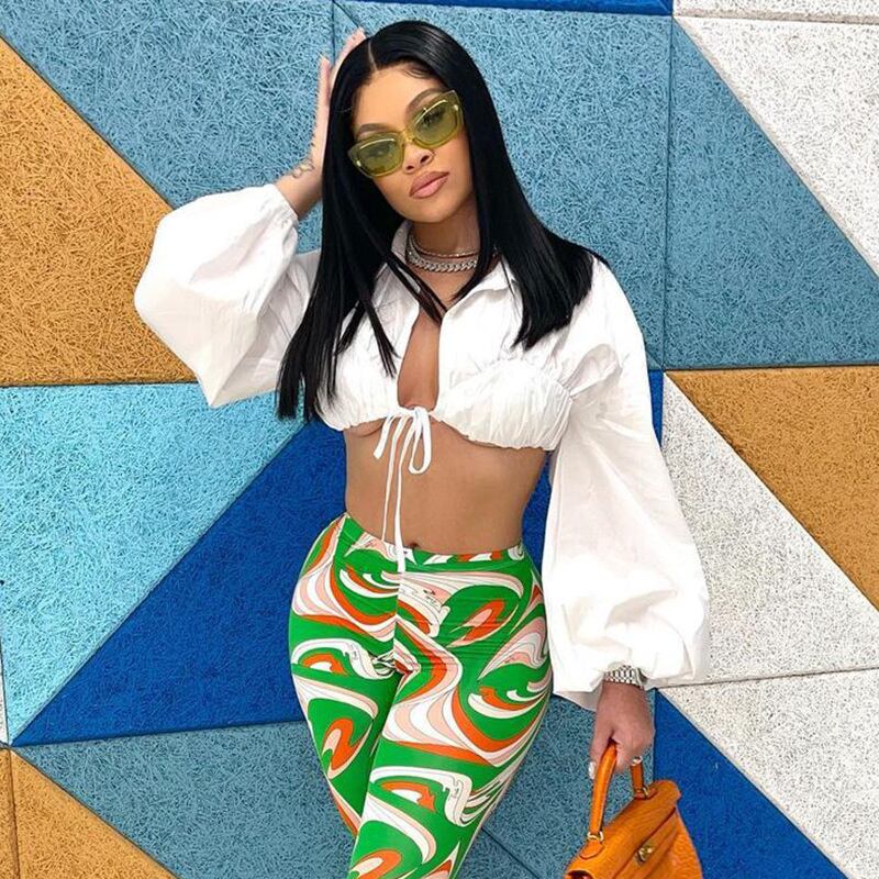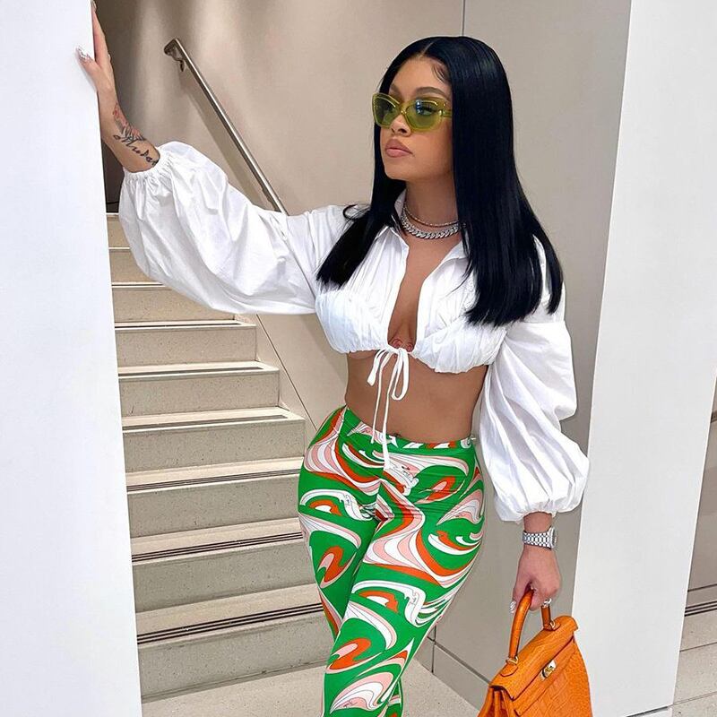 送料無料 Mozision セクシーなパフスリーブ包帯レースアップ女性シャツ白ディープ V ネックショートブラウススリムシャツストリート ホワイト Vネック AE121288826737836200