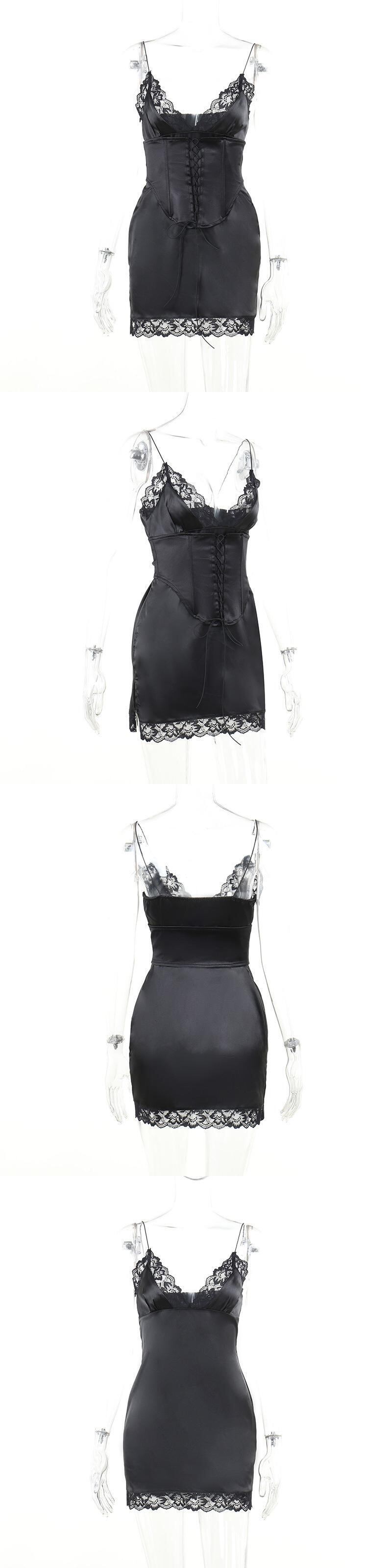 送料無料 Mozision ホワイトレーススパゲッティストラップセクシーなミニドレス女性ローブ V ネックノースリーブコルセットボディコンパーティーショートドレス Vestidos Vネック AE121288870812075537
