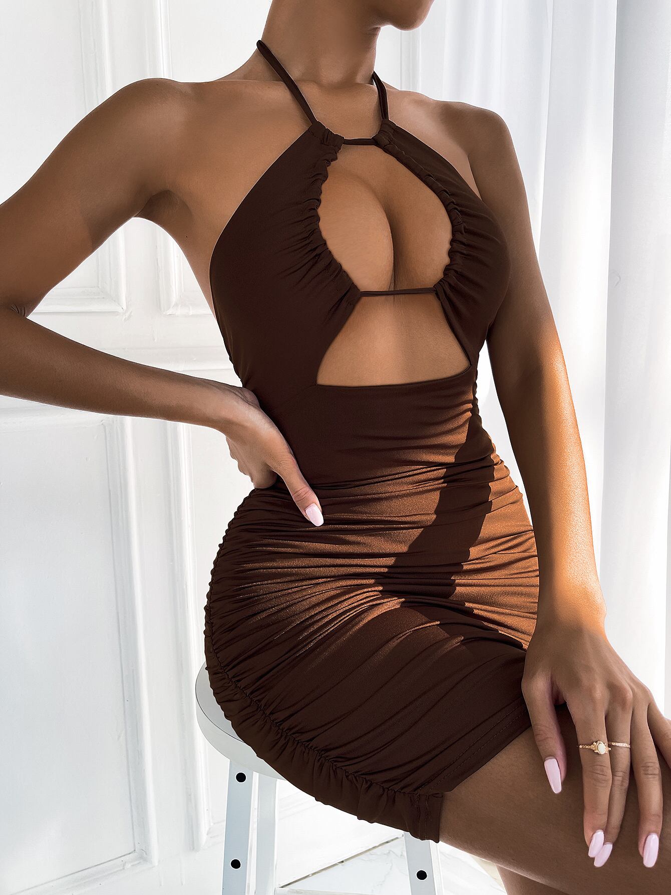 送料無料 Mozision 中空アウトホルター背中の開いた女性のドレスセクシーな夏のノースリーブボディコンパーティークラブウェアシャーリングドレス Vestidos サマー 夏物 AE121288845155194079