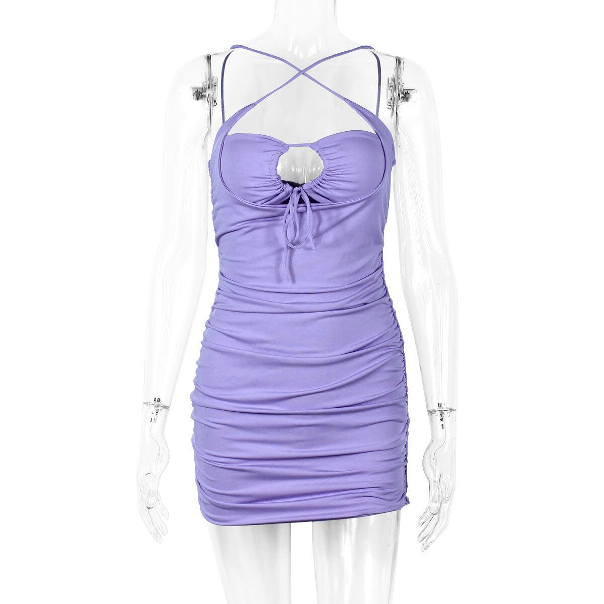 送料無料 Mozision セクシーな中空バックレスミニドレス女性ローブ 2022 ホルターノースリーブシャーリングドレス Vestido クラブウェア AE121288864277961474
