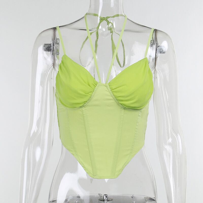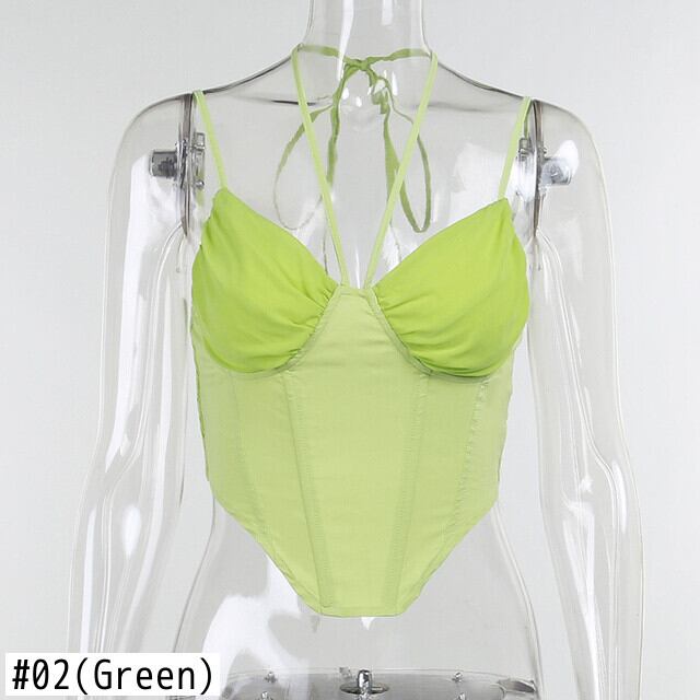 送料無料 Mozision ホルターネックレースアップ背中コルセットトップ女性の夏のノースリーブスパゲッティストラップクロップトップセクシーなビーチキャミソールトップス サマー 夏物 AE121288869969062410
