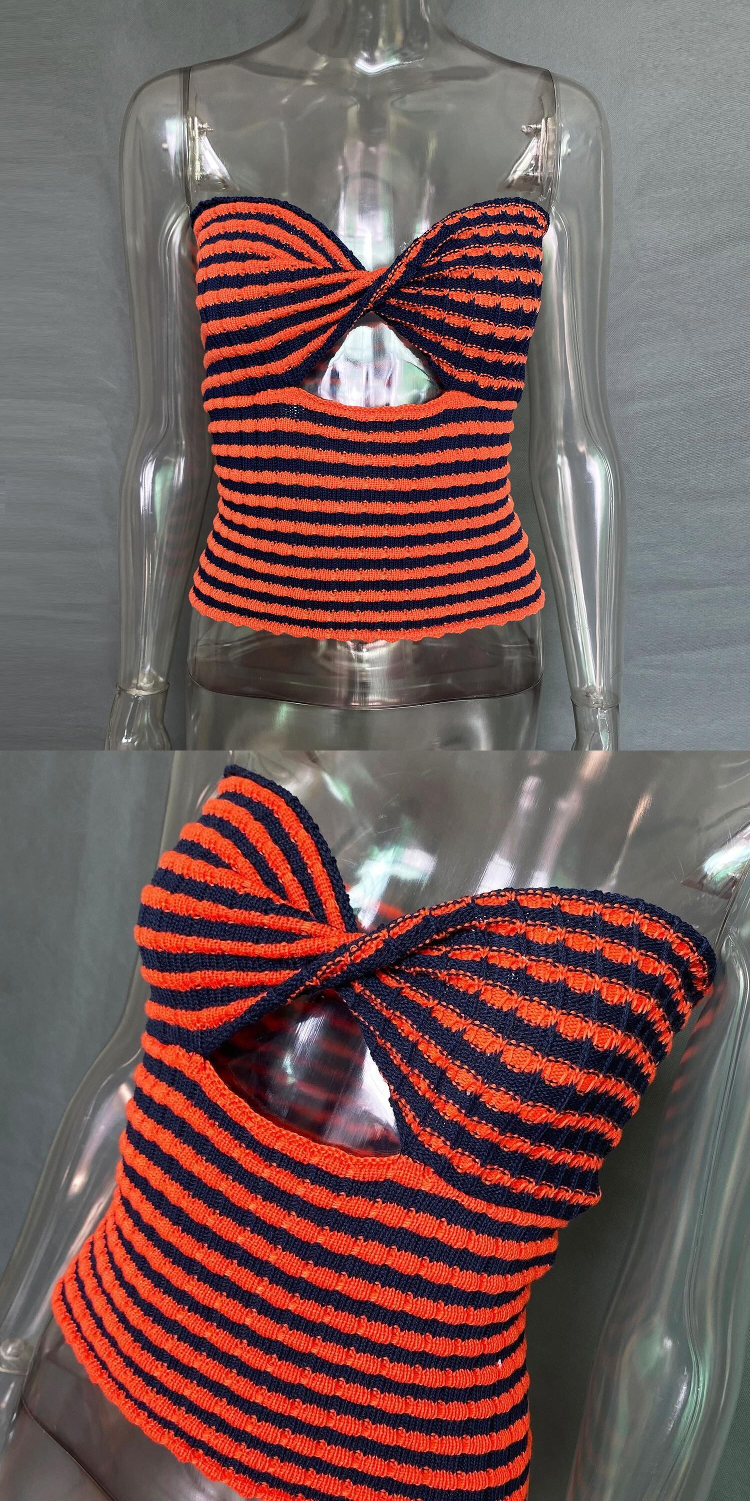 送料無料 Mozision ストライプ中空アウトニットベスト女性秋オフショルダー背中の開いたセクシーなセーターニットプルオーバーベスト オータム 秋物 AE121288825511912263