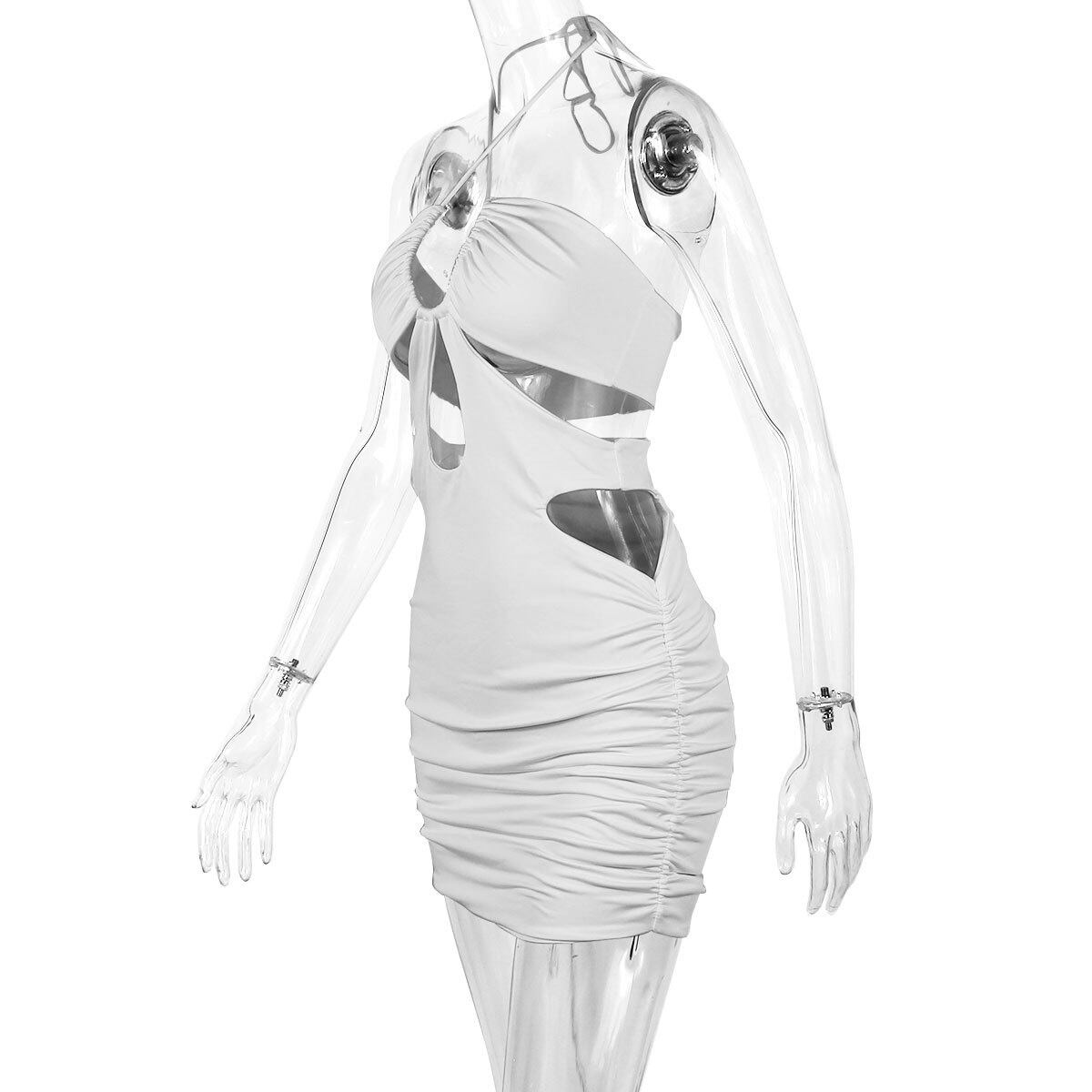 送料無料 Mozision セクシーな中空ホルターシャーリングミニドレス女性の夏のノースリーブ背中の開いたスキニードレス Vestido サマー 夏物 AE12128885968396169