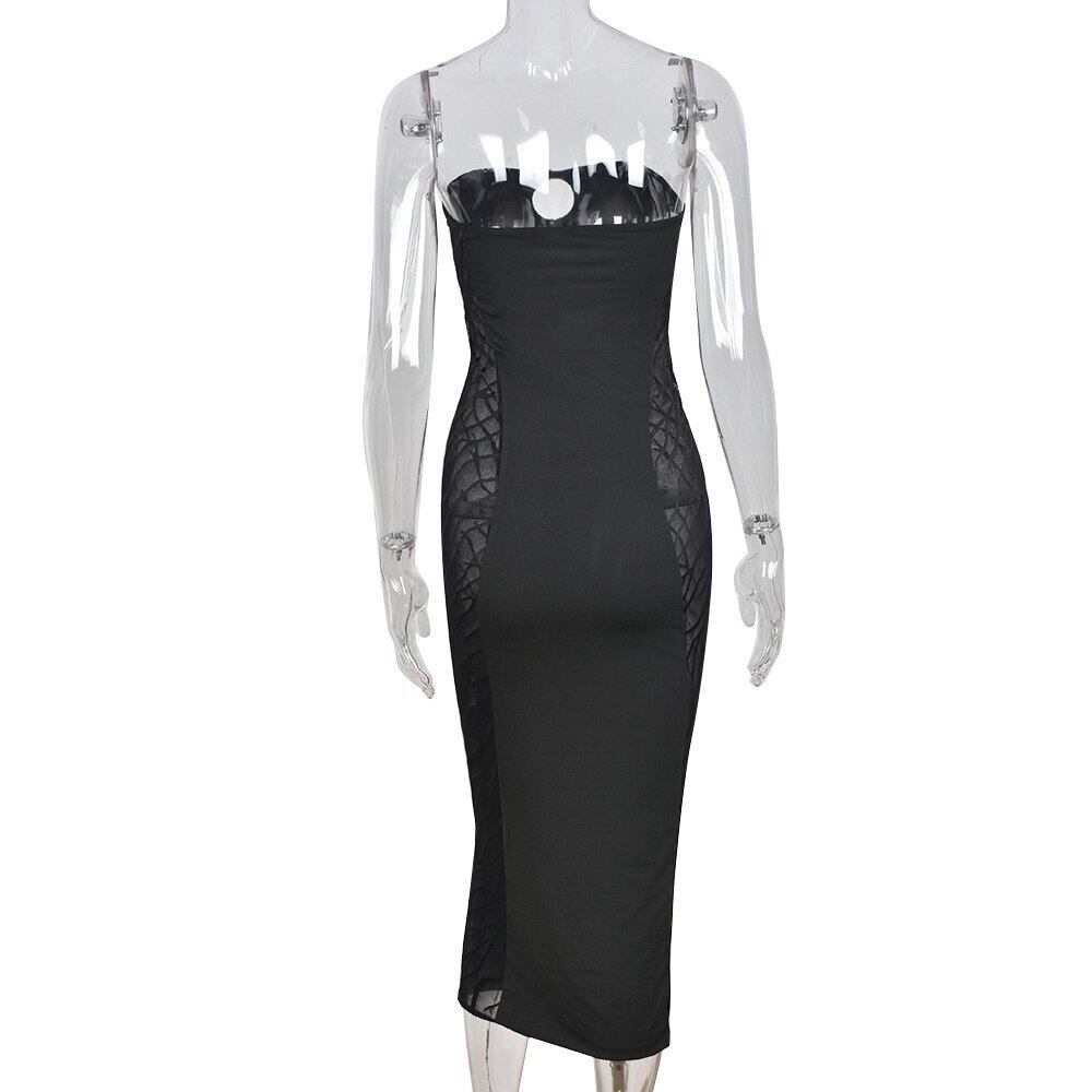 送料無料 Mozision セクシーな中空アウトメッシュロングドレス女性 2022 夏ストラップレスバックレスノースリーブボディコン黒マキシドレス衣装 ブラック サマー 夏物 AE121288840988675076