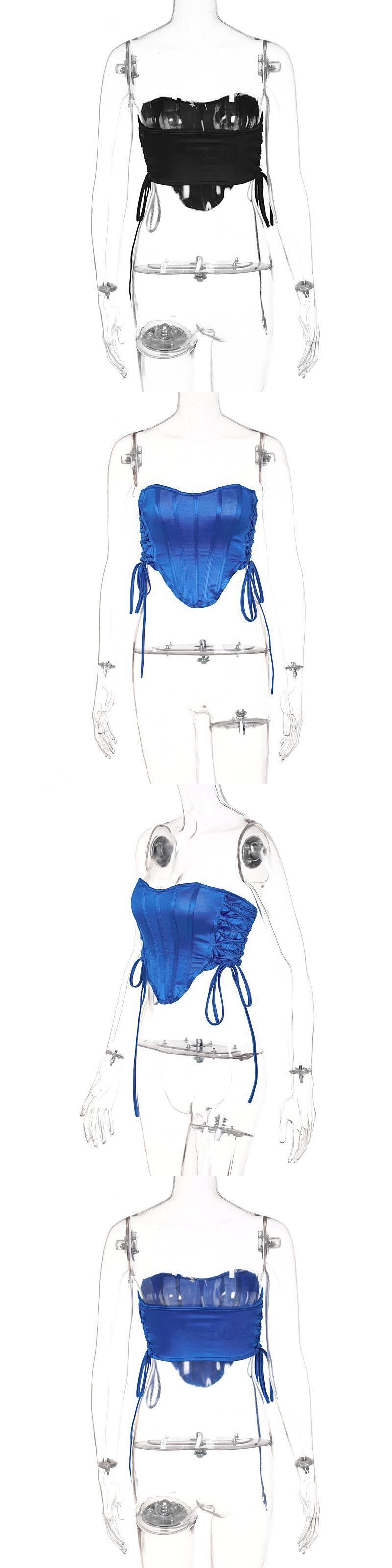 送料無料 Mozision フィッシュボーンクロップトップス レディース オフショルダー 非対称サイド巾着 Vネック ラップ サテン キャミソール チューブ セクシー ビスチェ ソリッド ソリッドカラー AE121288832672786283
