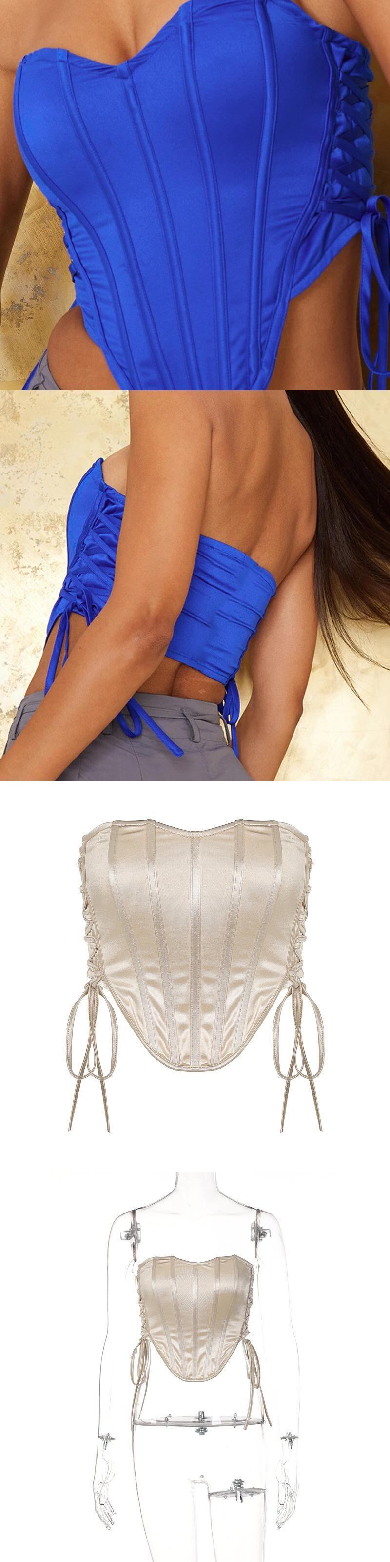 送料無料 Mozision フィッシュボーンクロップトップス レディース オフショルダー 非対称サイド巾着 Vネック ラップ サテン キャミソール チューブ セクシー ビスチェ ソリッド ソリッドカラー AE121288832672786283 | 女性の為の通販サイト-fashion navi