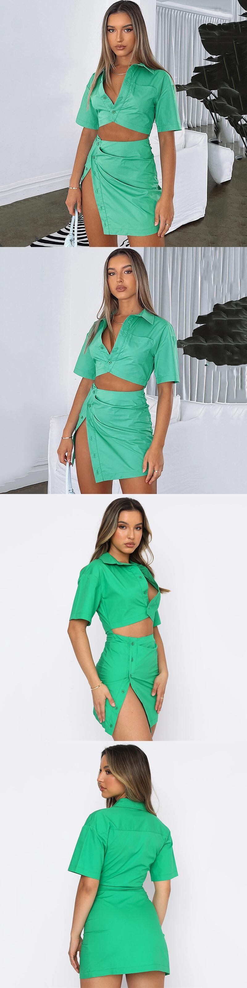 送料無料 Mozision 女性ツーピースセット女性 2022 夏ターンダウン襟シャツとミニスカートスーツボディコン衣装 サマー 夏物 AE121288892778675734