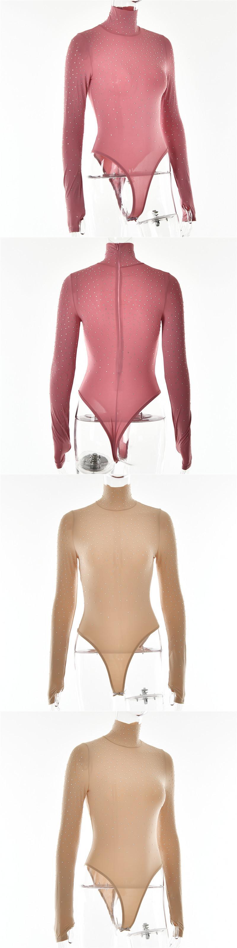 送料無料 Mozision ブライトダイヤモンドタートルネックスリムボディスーツ女性ロンパース 2023 長袖グリッター Tシャツセクシーなパーティーボディスーツ ロング AE121288839453585504
