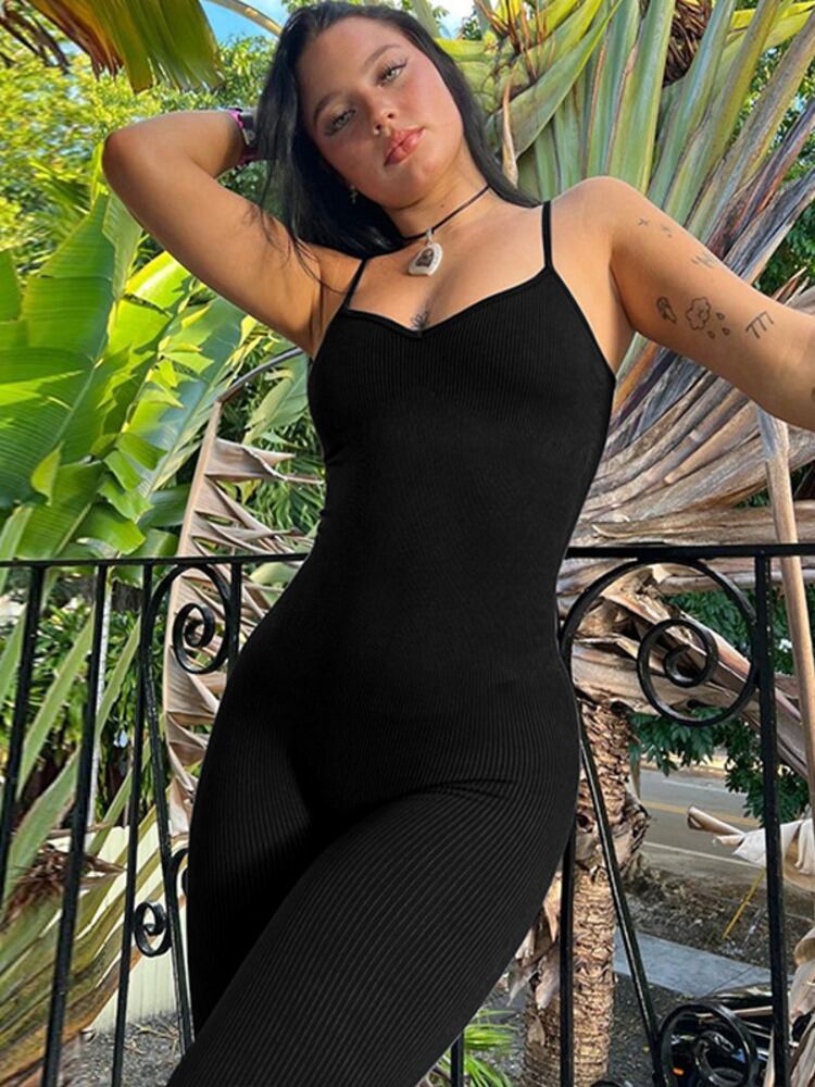 送料無料 Mozision ストラップノースリーブスキニージャンプスーツ女性ロンパース V ネック背中の開いたセクシーなジャンプスーツフィットネススポーティパンツ服 Vネック AE121288896178970722